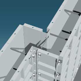 The Offset ISC is designed to eliminate the need for additional bracing. This is achieved by placing holes in the face sheet of this ISC. This allows ties to pass through the center of the offset.The offset ISC is one of WTF-most versatile corners. It can be used as a standard ISC or for various offsets using different size fillers. One pair of Flathead Pins is required to achieve offsets.